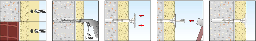 1. Para la fijación de paneles aislantes, en todos los materiales (hormigón, ladrillo macizo, ladrillo hueco, |
