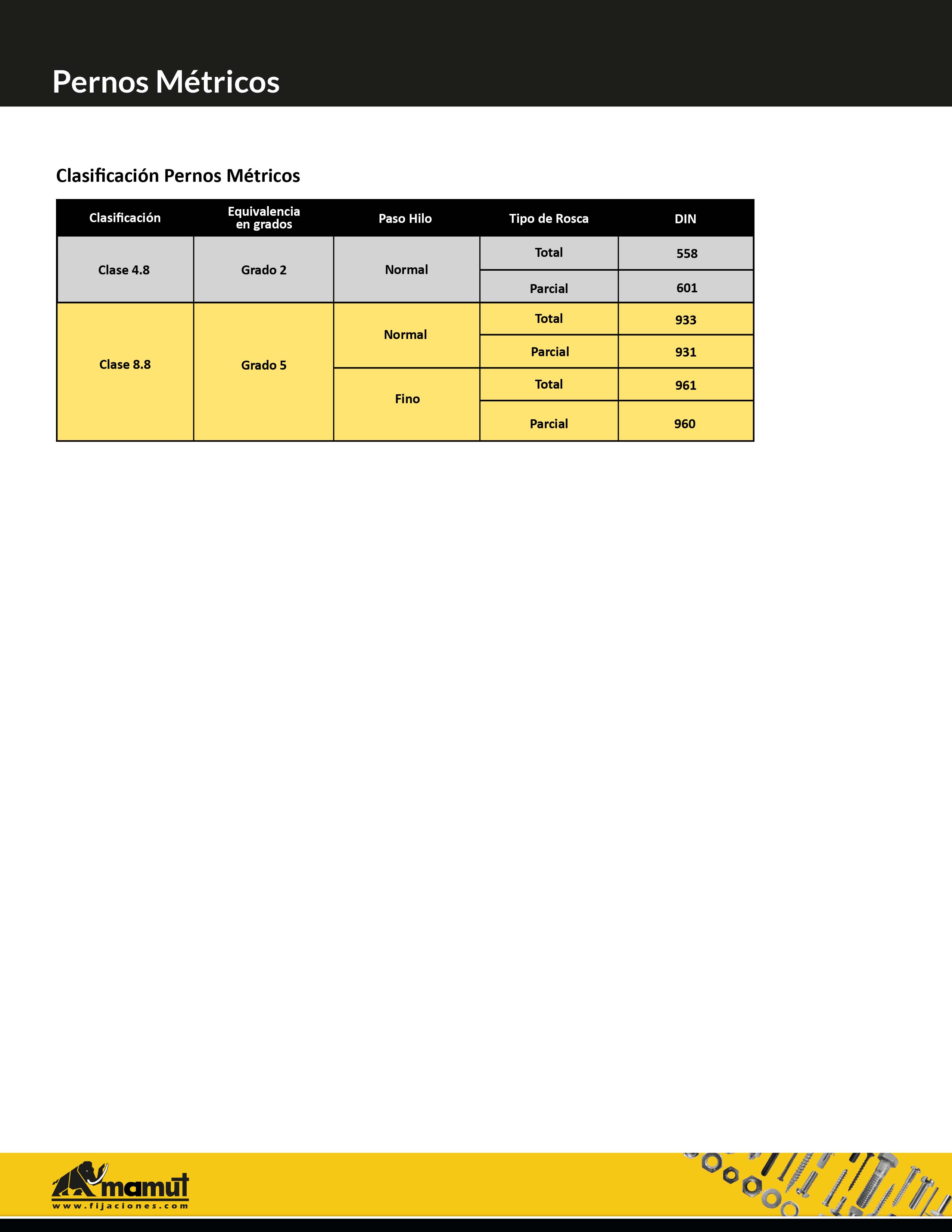 Chile pernos MAMUT pernos chile, tuercas, golillas, remaches, fijaciones Chile tornillos