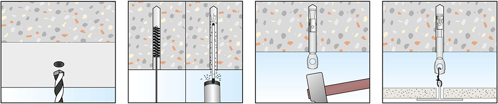 1. Anclaje con grapa, de acero cincado (agujero diám. 6mm en la extremidad plana). |