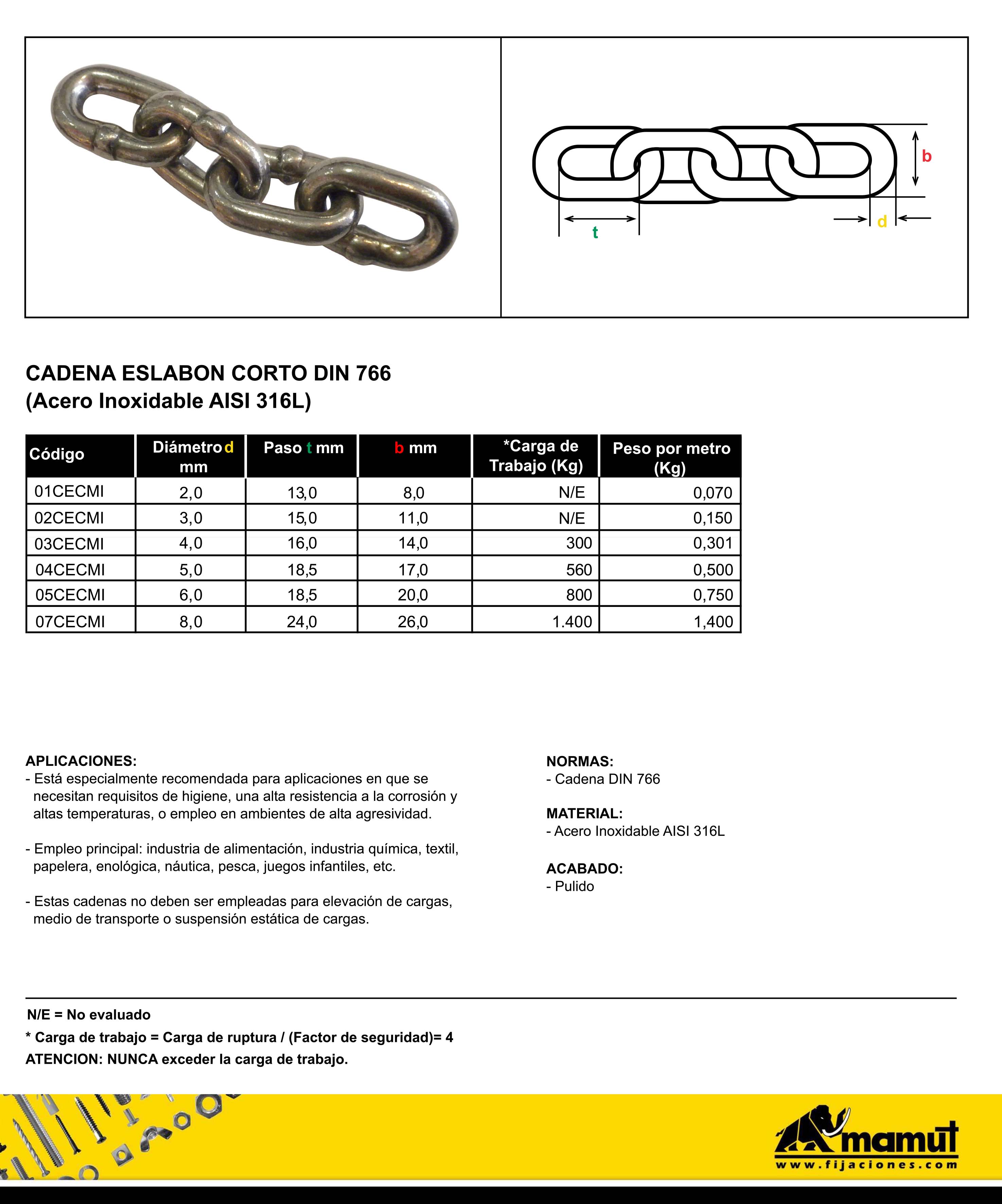 CADENA ESLABON CORTO ACERO INOXIDABLE