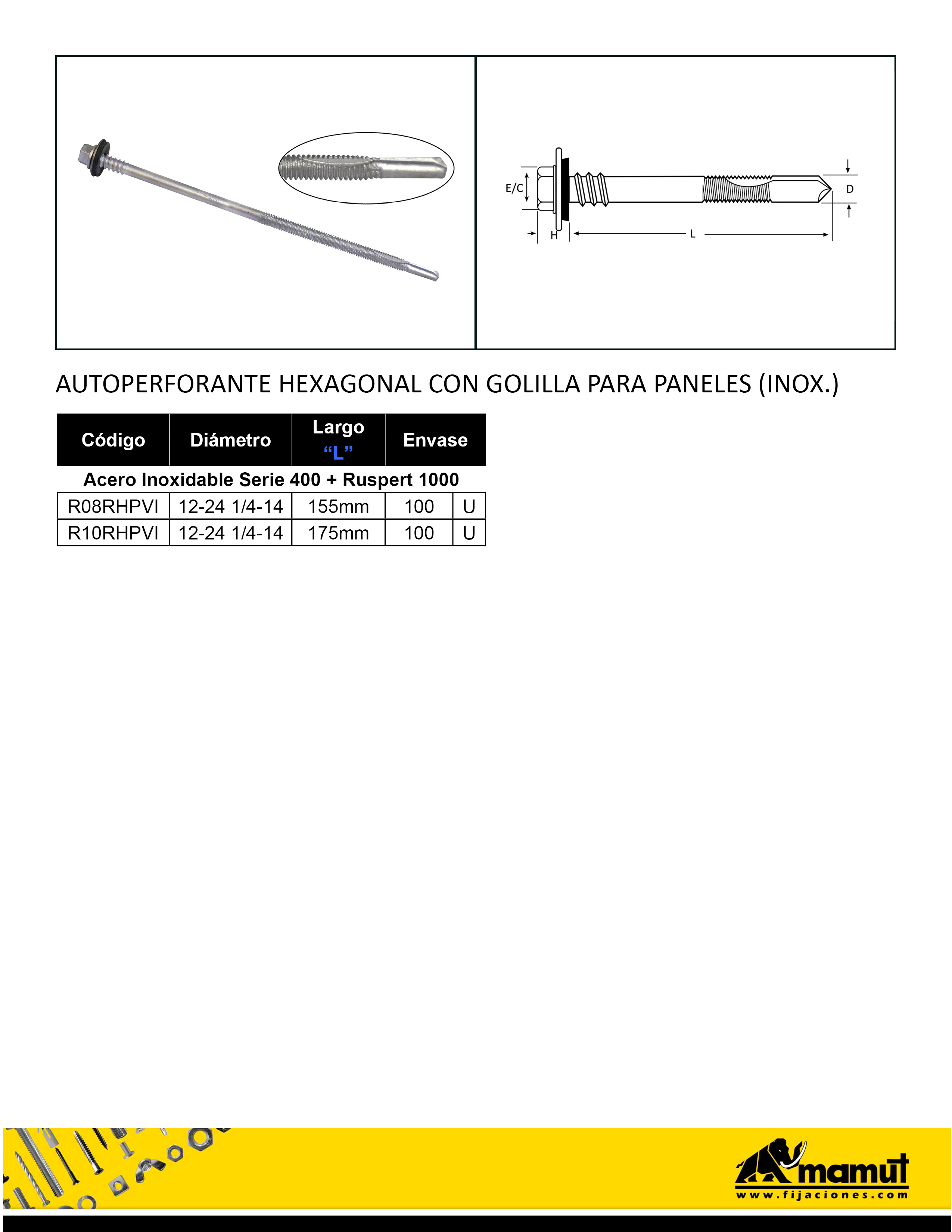 AUTOPERFORANTE HEXAGONAL PARA PANELES INOXIDABLES