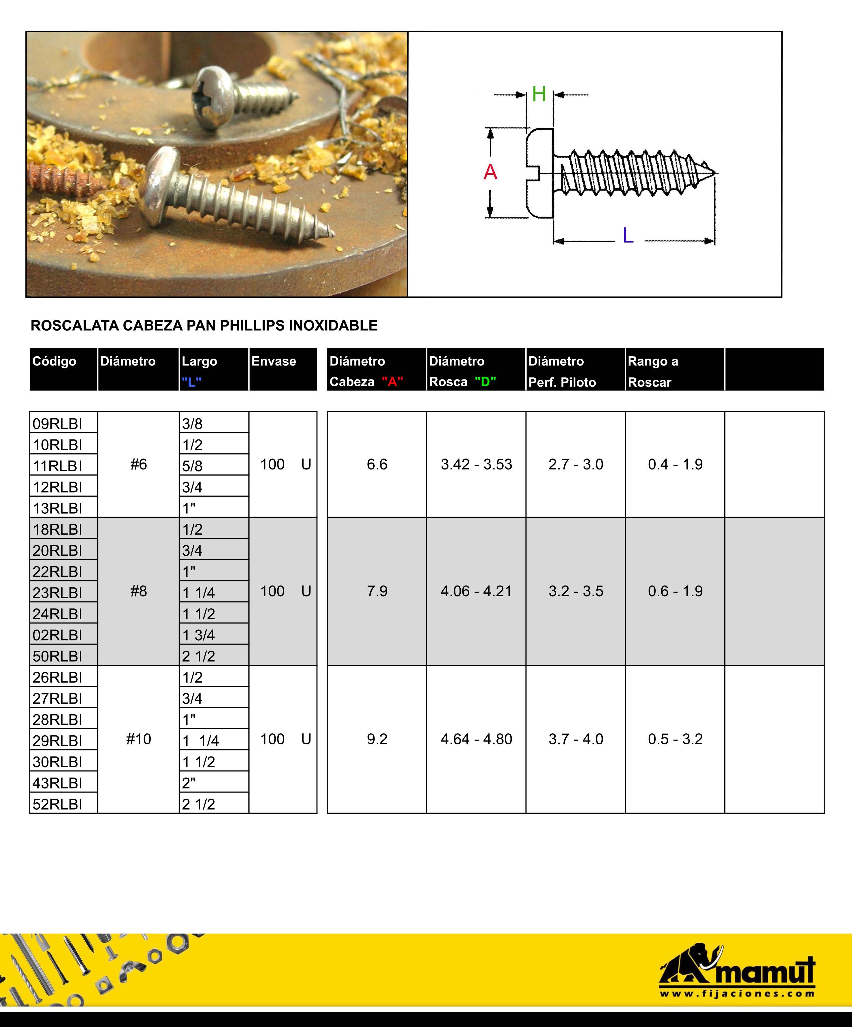 ROSCALATA RANURA PHILLIPS INOXIDABLE