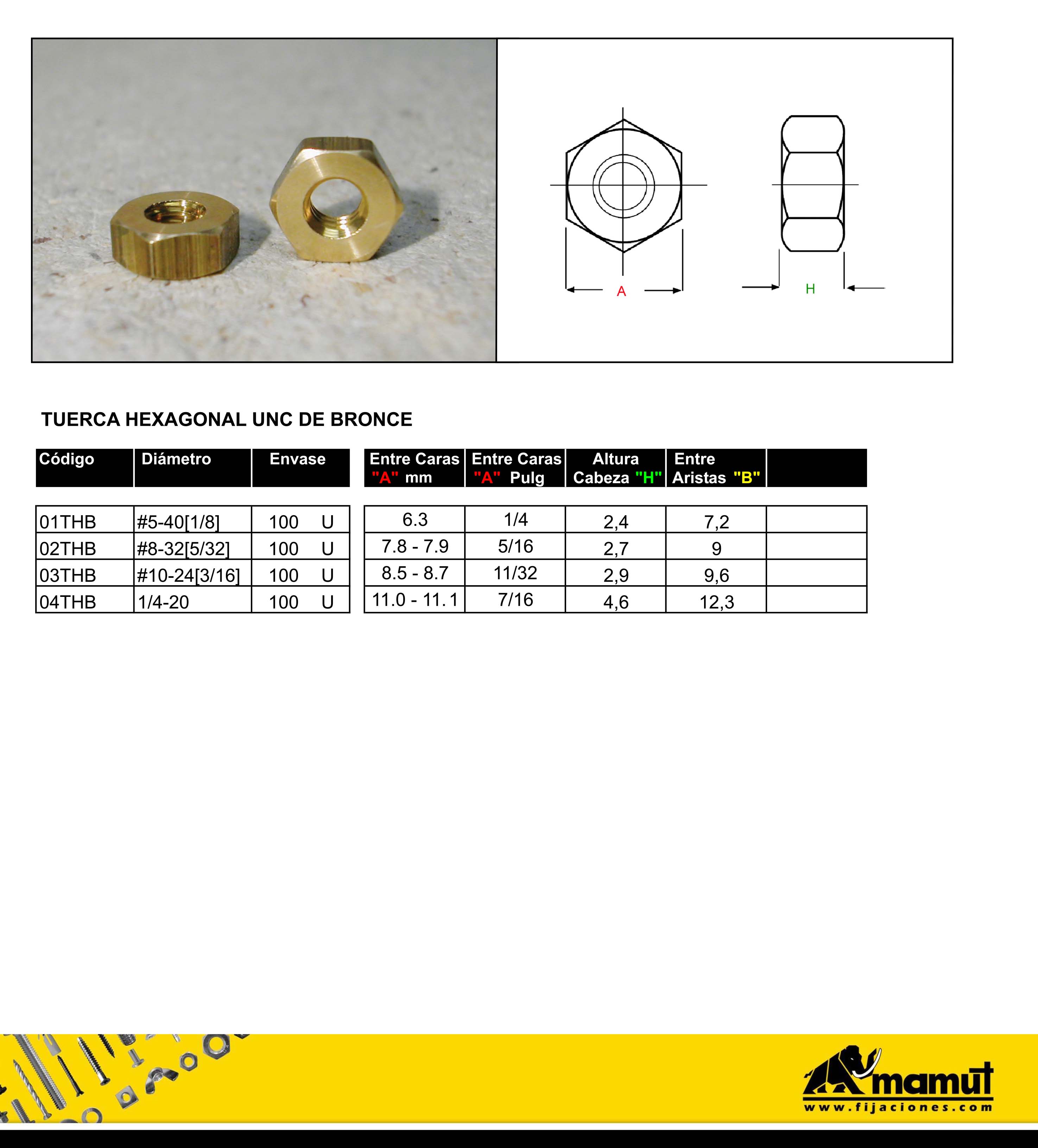 TUERCA HEXAGONAL DE BRONCE