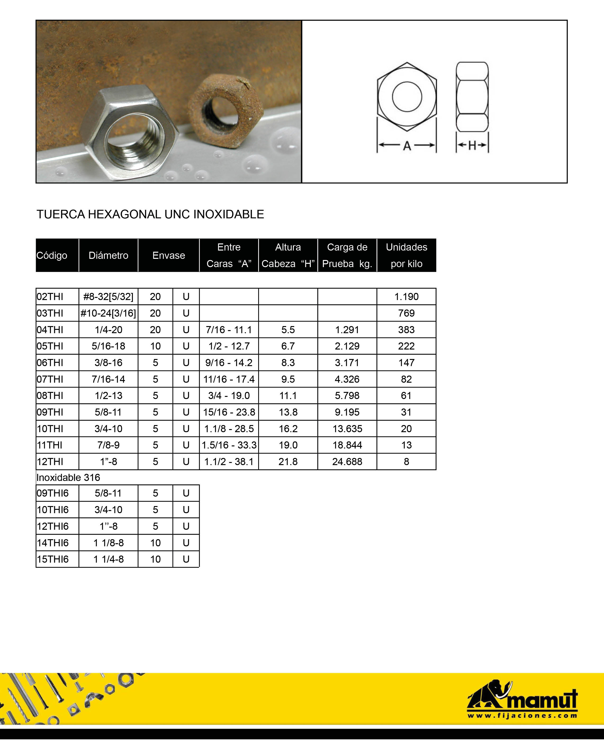 TUERCA HEXAGONAL INOXIDABLE